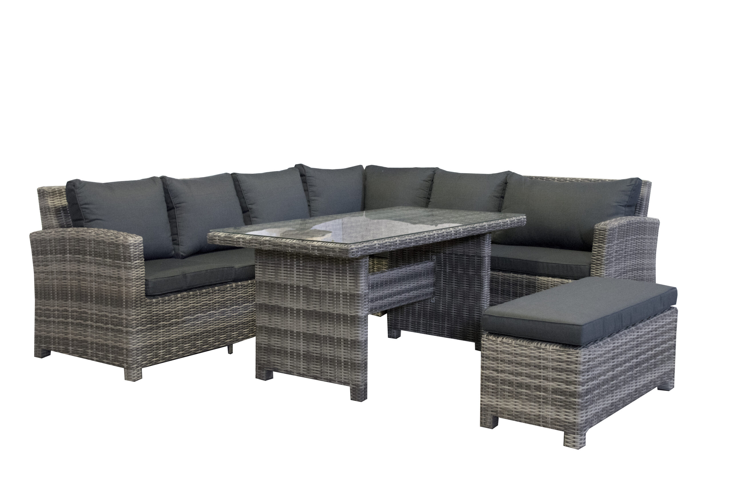 Loungemöbel Gartenmöbel Ecklounge Parma kaufen bei Intergard?Hochwertiges Aluminium-Gartenmöbel-Lounge Set, hergestellt aus pulverbeschichtetem Aluminium. Bestehend aus 1x Sofa 120x78x83cm, 90x78x83cm und 2x 55x78x83cm. Tisch 143x78x78cm. Fußhocker 96x40x35cm und Polyesterkissen.Entspricht der Artikel nicht den Wünschen des Kunden, besteht kein Rückgaberecht und die Verantwortung liegt allein beim Kunden. Transportschäden müssen auf dem Frachtbrief des Fahrers vermerkt werden und wir empfehlen, das Produkt immer sowohl außen als auch in der Verpackung zu fotografieren. Der Endverbraucher sollte das Paket immer öffnen, wenn der Fahrer noch anwesend ist, um eine schnelle Kontrolle zu machen!