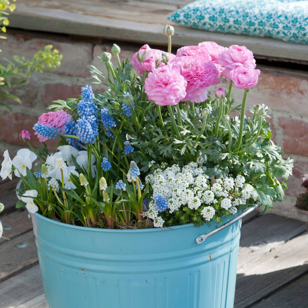 Tauchen Sie mit unserem Pflanzenset „Charmante Frühlingsblumen“in die zauberhafte Welt des Frühlings. Dieses Set vereint eine harmonische Auswahl von zarten und eleganten Blumen, die Ihren Garten in eine bezaubernde Frühlingslandschaft verwandeln. Die Lieferung erfolgt ohne Übertopf. Das Set besteht insgesamt aus 7 Pflanzen: Set-Inhalt Botanischer Name Blütezeit 1x Ranunkel, rosa Ranunculus asiaticus Februar – Juni 1x Traubenhyazinthe, blau Muscari armeniacum April – Mai 1x Traubenhyazinthe, weiß Muscari armeniacum April – Mai 2x Schleifenblume, weiß Iberis sempervirens April – Mai 2x Hornveilchen, weiß Viola cornuta April – Juni