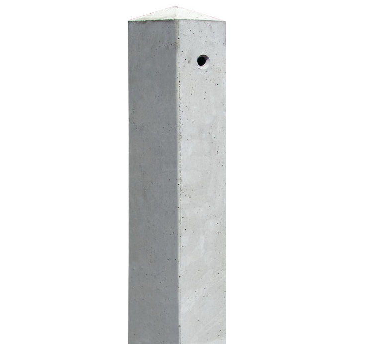 Betonpaal schutting hout beton van gewapend beton, voorgeboord en met gleuf voor betonplaat voor schuttingen van 180x180cm. TIP: Met betonverf in elke gewenste kleur te schilderen!