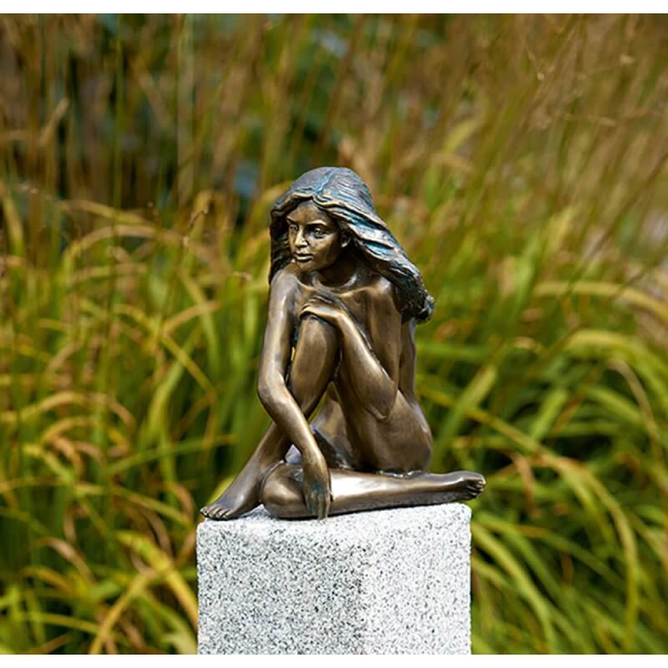 Bronzeskulptur Demi Die Figur Demi ist eine sehr schön, von Hand gearbeitete Bronzeskulptur. Die Bronzefigur, die eine verträumte, junge Dame darstellt, ist bereits mit einer schmucken Patina versehen. Eine stilvolle und romantische Dekoration für Haus und Garten. Die Bronzeskulptur wird ohne Steinstele geliefert, kann aber auch mit Stele bestellt werden. Größe* Höhe: 24 cm Breite: 16 cm Tiefe: 16,5 cm *Bei den handgearbeiteten Bronzefiguren sind Differenzen bei den Abmessungen und der Patina in gewissen Toleranzen unvermeidlich. Jede Figur ist ein handgearbeitetes Unikat, hergestellt in Deutschland. Allgemeine Information zur Geschichte und Herstellung der Figuren, zu Bronze allgemein und auch zur Pflege von Bronzeskulpturen haben wir Ihnen unter der Rubrik Informationen zu Bronzeskulpturen zusammengefasst