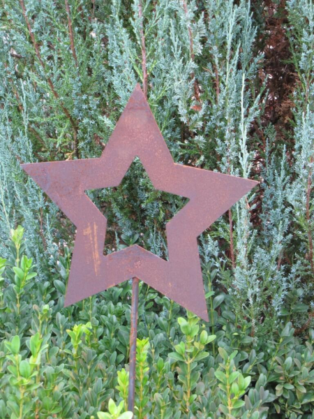 Edelrost Gartenstecker Stern offen, breite Ausführung Ein toller Stern für die Weihnachtszeit, hier in breiter Ausführung. Ein schönes Accessoire für Garten Balkon und Terrasse. Größe: Höhe: ca. 90 cm inkl. Stab Breite: 25 cm Deutsche Qualitätsarbeit, hergestellt in Handarbeit