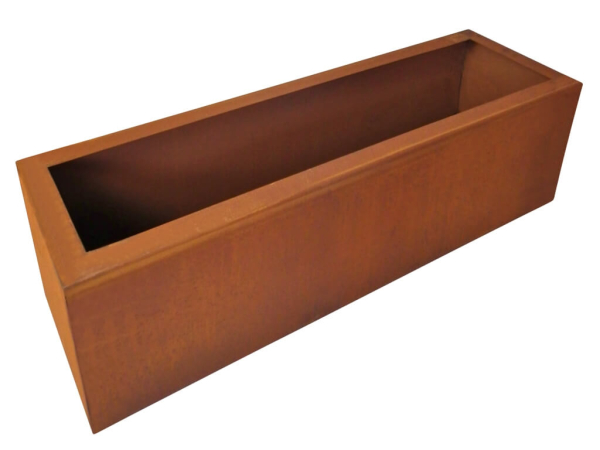 Edelrost Pflanzkübel rechteckig breit 100 cm Eine sehr dekorative Möglichkeit, Topfpflanzen in edlem Edelrost Design zu präsentieren. Der Pflanzkübel ist oben abgekantet, was ebenfalls zum edlen Aussehen beiträgt. Zum Überwintern empfehlen wir, den Innenraum mit Kokosmatten oder Luftpolsterfolie auszukleiden, somit haben Sie auch im Winter ein farbliches Highlight im Garten oder auf der Terrasse. Größe: Höhe: 30 cm Breite: 100 cm Tiefe: 30 cm Material: Stahl, 1,5 mm Deutsche Qualitätsarbeit, hergestellt in Handarbeit