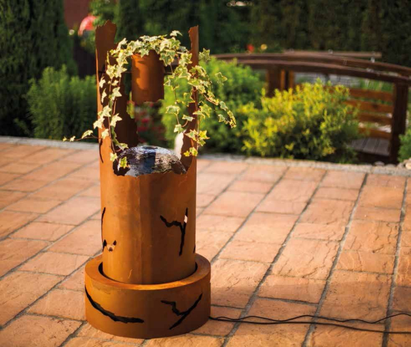 edler Edelrost Brunnen Rissdekor Der Brunnen Rissdekor besteht aus Säule, Wanne, Wannenschutz, Pumpe und Lampen. Die Lampen haben einen integrierten Lichtsensor (Dämmerungsschalter). Dieser schaltet die Leuchten in der Dämmerung automatisch ein und bei Tageslicht wieder aus. Zusätzlich werden Farbscheiben mitgeliefert, die in die Lampen eingesetzt werden können. Der Brunnen verfügt außerdem über einen Behälter über dem Wasser, der bepflanzt oder befeuert werden kann. Der Durchmesser des Wasserstrahls kann manuell eingestellt werden. (Für diesen Artikel fällt einmalig ein Sperrgutzuschlag an, entfällt bei Abholung und Barzahlung vor Ort) Größe: Höhe: 120 cm Durchmesser: 60 cm Deutsche Qualitätsarbeit, hergestellt in Handarbeit Rücknahmepflicht für Verpackungsmaterial Wir sind gesetzlich verpflichtet, die folgenden Verpackungsmaterialien von Endverbrauchern und insbesondere von Privathaushalten unentgeltlich zurückzunehmen: Transportverpackungen (Verpackungen, welche die Handhabung und den Transport von Waren in einer Weise erleichtern, dass deren direkte Berührung sowie Transportschäden vermieden werden, und typischerweise nicht zur Weitergabe an den Endverbraucher bestimmt sind – etwa Paletten, Folien, Kartonagen für Sammelgut etc.) Auch bei Lieferung dieses Produkts anfallendes Verpackungsmaterial wird von uns unentgeltlich zurückgenommen. Weil dieses Verpackungsmaterial nicht an einem dualen Entsorgungssystem beteiligt werden kann, stellen wir durch die Rücknahme die Rückführung des Materials in einen geordneten Verwertungskreislauf sicher. Endverbraucher können das bei der Lieferung anfallende Verpackungsmaterial am tatsächlichen Ort der Lieferung dem ausliefernden Unternehmen übergeben.