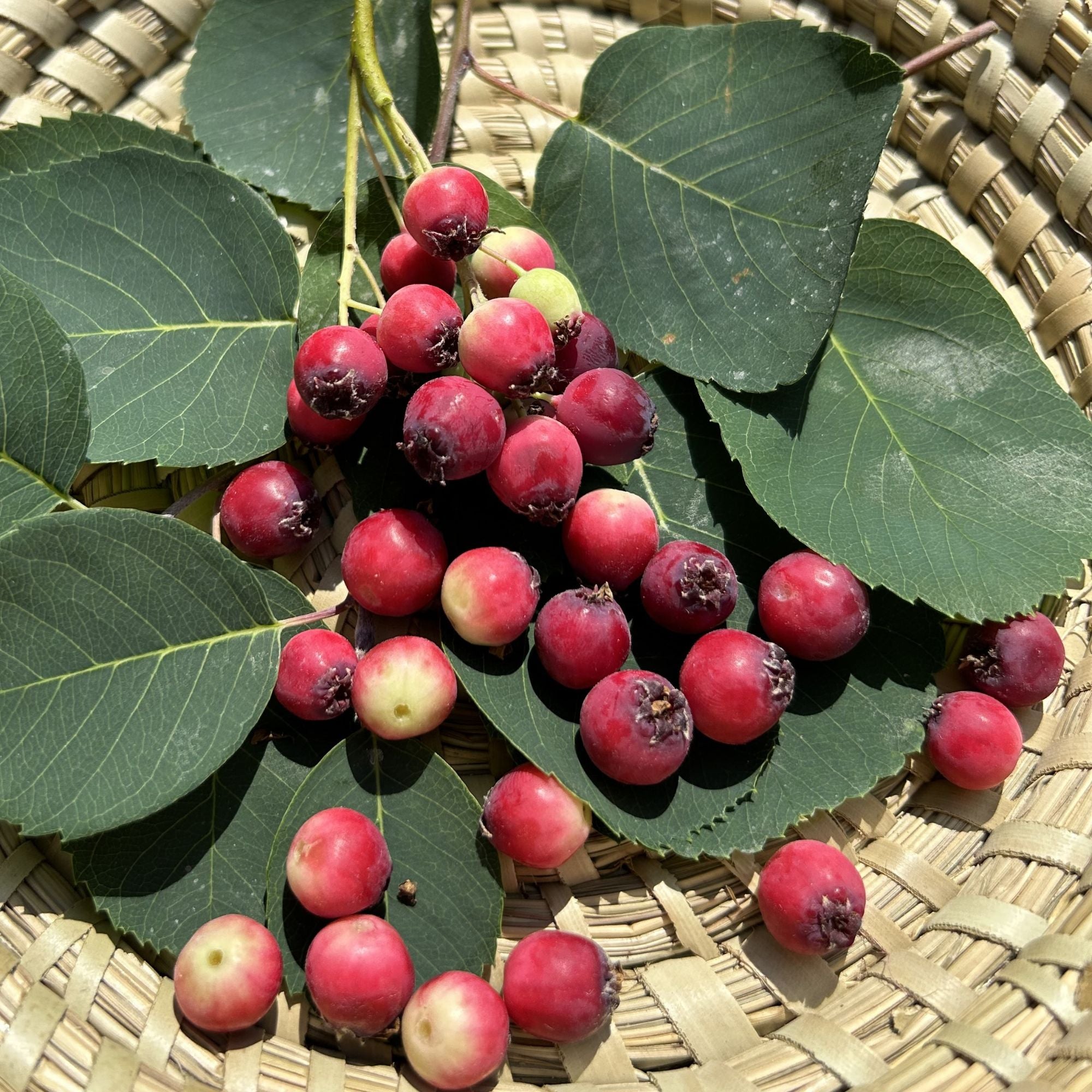 Entdecken Sie mit der Erlenblättrigen Felsenbirne ‚Greatberry® Farm‘ (bot. Amelanchier alnifolia) ein wahres Multitalent für Ihren Garten: Diese kanadische Fruchtspezialität vereint Ziergehölz und Nutzpflanze in einem. Mit ihrem aufrechten, mehrstämmigen Wuchs erreicht sie eine Höhe von bis zu 4 Metern – und begeistert vom Frühjahr bis in den Herbst mit außergewöhnlicher Vielfalt. Bereits ab April zeigt sich der Strauch in voller Pracht: Zahlreiche cremeweiße, nektarreiche Blüten locken Bienen und Insekten an. Im Sommer folgt der kulinarische Höhepunkt – süße, schwarz-blaue Beeren, die sich hervorragend für Säfte, Marmeladen, Eis oder den direkten Genuss vom Strauch eignen. Die Sorte gilt als besonders ertragreich und punktet mit aromatischem Geschmack. Im Herbst verwandelt sich das dunkelgrüne Laub in ein leuchtendes Farbenspiel aus Gold, Orange und Rot – ein echtes Schauspiel im Garten. Ob als Solitärgehölz, in Wildobsthecken oder zur natürlichen Sichtschutzbepflanzung – die Felsenbirne ist vielseitig einsetzbar und äußerst pflegeleicht. Dank ihrer extremen Winterhärte bis -35 °C ist sie auch für raue Regionen bestens geeignet. Lust auf leckere Rezepte mit Ihrer Erlenblättrige Felsenbirne ‚Greatberry® Farm‘? Dann klicken Sie hier: Rezeptideen