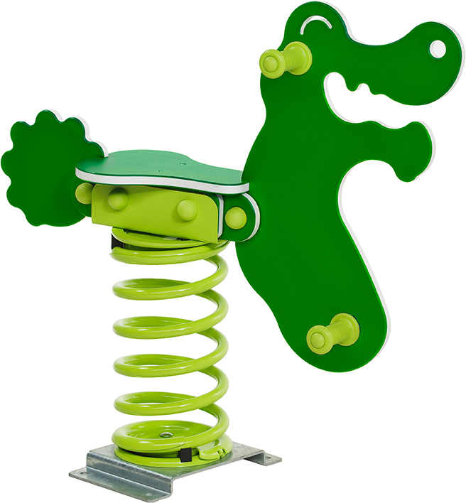 Möchten Sie ein Wipptier oder Federtier Crocodile bei Intergard kaufen?Wipptier oder Federtier Crocodile kunststoff 100 x 60 cm, mit bunter Lackierung (witterungsbeständig, vandalismusbeständig) und verstärkten Kunststoffgriffen und Fußstützen mit Anti-Rutsch-Profil. feuerverzinkter Stahlanker, vorzugsweise zum Einbetonieren. Geeignet für öffentliche Spielplätze. TÜV geprüft nach EN1176.