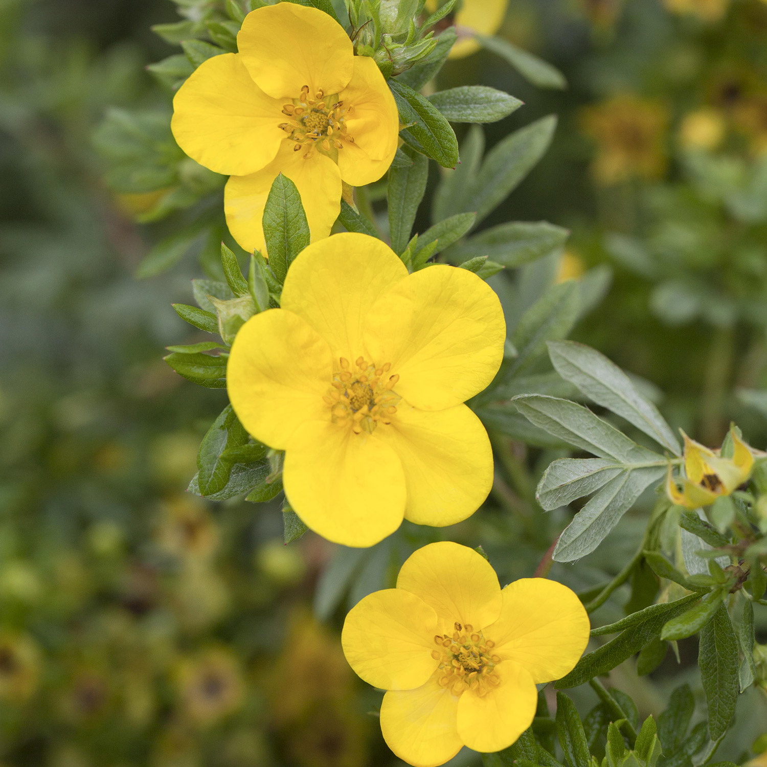 Fingerstrauch 'Dakota Sunspot®': Sonniges Gelb für Ihren Garten Fingerstrauch 'Dakota Sunspot®': Ein Leuchten in Gelb Der Fingerstrauch 'Dakota Sunspot®' ist eine strahlende Ergänzung für jeden Garten, bekannt für seine lebhaften, hellgelben Blüten, die von Frühsommer bis in den Herbst hinein für ein kontinuierliches Farbenspiel sorgen. Diese Sorte zeichnet sich durch ihre außerordentliche Pflegeleichtigkeit und Robustheit aus, was sie zu einer idealen Wahl für Gartenliebhaber macht, die nach langlebigen und pflegeleichten Pflanzen suchen. Vorteile des Fingerstrauchs 'Dakota Sunspot®' Strahlend gelbe Blüten: Sorgen für eine beständige Farbpracht im Garten. Lange Blütezeit: Freuen Sie sich von Frühsommer bis Herbst über die lebhaften Farben. Pflegeleicht: Benötigt wenig Aufmerksamkeit und ist anpassungsfähig an viele Bodenarten. Robust: Widerstandsfähig gegen Trockenheit und Kälte, geeignet für eine Vielzahl von Klimazonen. Pflanz- und Pflegehinweise Der Fingerstrauch 'Dakota Sunspot®' bevorzugt einen sonnigen bis halbschattigen Standort mit gut durchlässigem Boden. Eine moderate Bewässerung ist ausreichend, besonders in trockenen Perioden. Ein jährlicher Rückschnitt im Frühjahr fördert ein gesundes Wachstum und eine reiche Blütenbildung. Erhellen Sie Ihren Garten mit 'Dakota Sunspot®' Mit dem Fingerstrauch 'Dakota Sunspot®' bringen Sie nicht nur lebendige Farben in Ihren Garten, sondern auch eine pflegeleichte und robuste Pflanze, die den Außenbereich ohne großen Aufwand bereichert. Genießen Sie die Schönheit und Einfachheit, die 'Dakota Sunspot®' in Ihren Garten bringt.