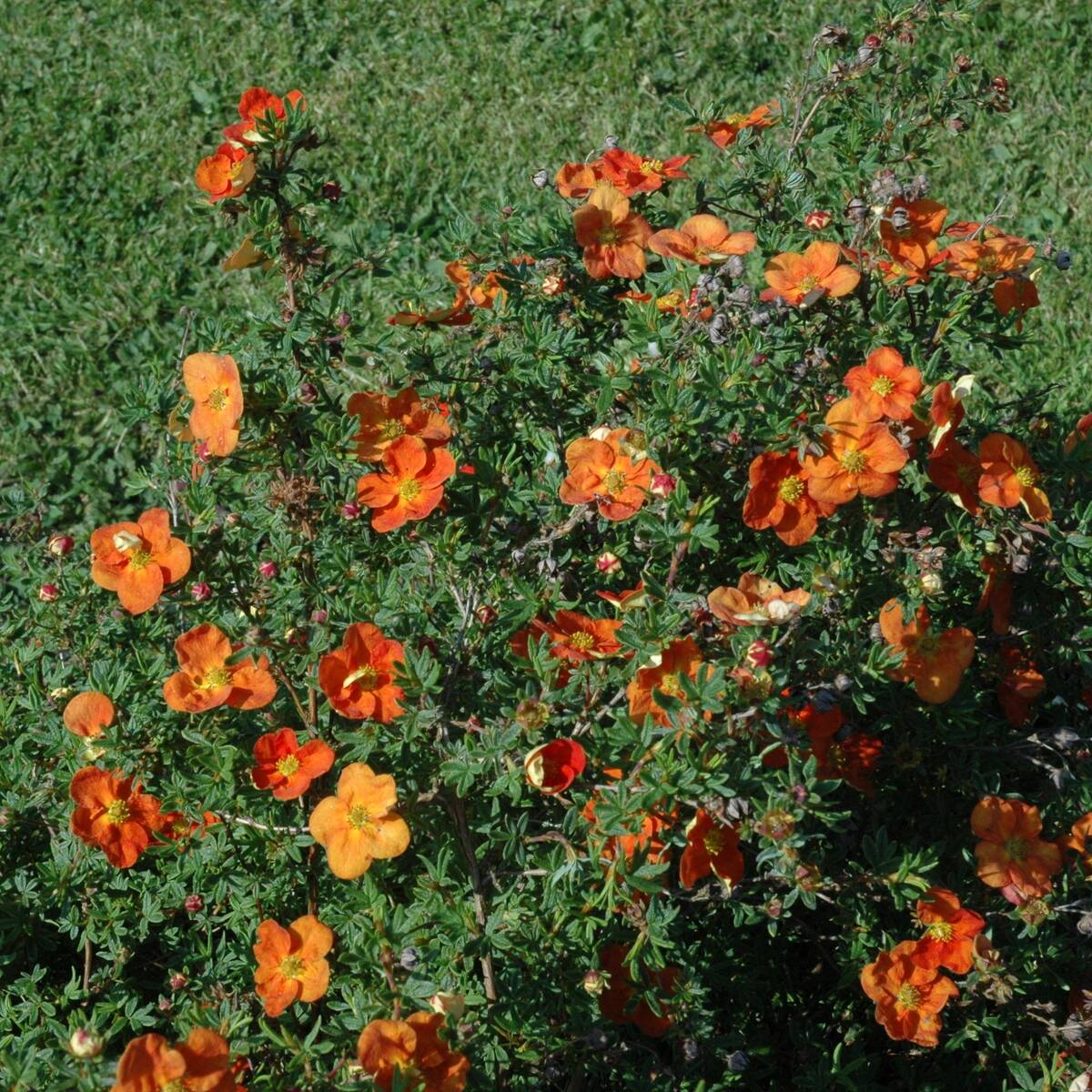 Der Fingerstrauch ‚Red Ace‘ (Potentilla ‚Red Ace‘) ist ein sommergrüner Zwergstrauch, der einen buschigen, breiten Wuchs aufweist. Bis zu 60 cm Höhe und 1,2 m Breite kann er damit erreichen. Sein Blätterkleid besteht aus dunkelgrünen, gefingerten Blättern. Von Juni bis Oktober trägt er schalenförmige, orangerote Blüten. Durch den typischen Habitus eignet sich dieses attraktive Gehölz besonders gut als Bodendecker.