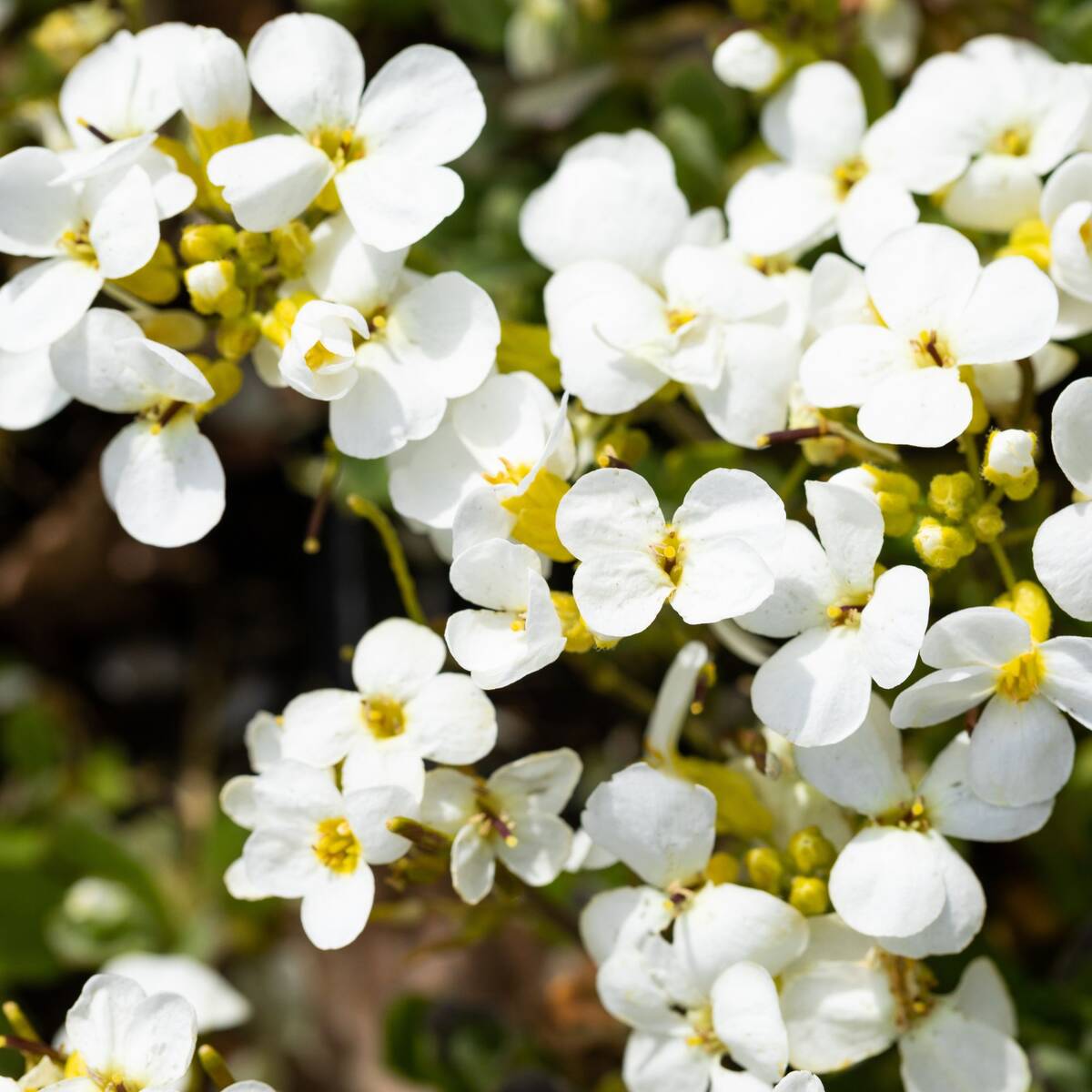 Die Gänsekresse (Arabis caucasica) ist eine robuste Frühjahrsblüherin, die Ihren Balkon, Kübel oder das Beet im Frühjahr mit einem Teppich aus zarten weißen Blüten schmückt. Sie eignet sich hervorragend als Bodendecker oder zur Bepflanzung von Steingärten, Rabatten und Steinstufen. Mit ihrer kompakten Wuchsform und den zahlreichen Blüten bringt sie eine freundliche, helle Farbe in jedes Pflanzgefäß und sorgt für einen harmonischen Frühlingsakzent. Besonders praktisch: Die Gänsekresse ist pflegeleicht und unkompliziert, wodurch sie sich ideal für Einsteiger oder Hobbygärtner eignet. Pflege: Pflanzen Sie die Gänsekresse an einen sonnigen bis halbschattigen Standort in gut durchlässigen, humosen Boden. Die Pflanze benötigt mäßig Wasser und sollte regelmäßig von verwelkten Blüten befreit werden, um die Blühfreude zu verlängern. Sie ist winterhart und pflegeleicht, benötigt keinen besonderen Rückschnitt und kann jedes Frühjahr erneut ihre Blütenpracht entfalten.