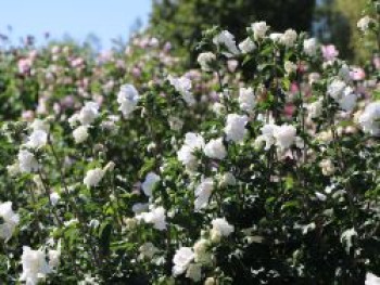 weißblühende Sorte, halbgefüllte Blüten, winterhart, sonniger und geschützter Standort zu empfehlen