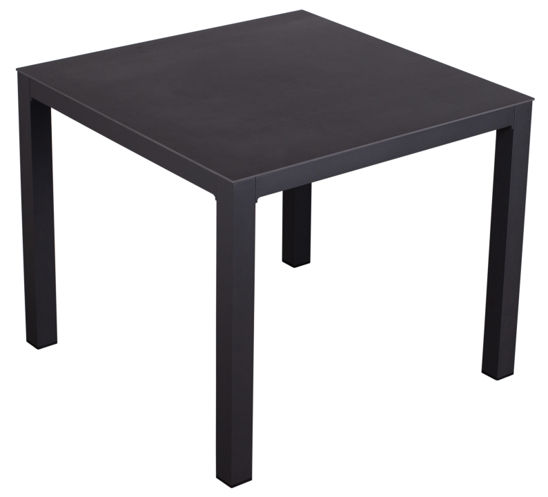 Der Gartentisch Tarifa überzeugt durch seinen robusten Aluminiumrahmen, der mit einer hochwertigen Pulverbeschichtung veredelt ist. Die Keramikoberfläche in Dark Grey ist porenfrei, fleckenunempfindlich und hoch kratz- sowie hitzebeständig, sodass selbst fleckbildende Flüssigkeiten keine Spuren hinterlassen. Die kompakten 90 x 90 cm wirken elegant und zugleich wertig und fügen sich mit ihrer reduzierten Formgebung harmonisch in