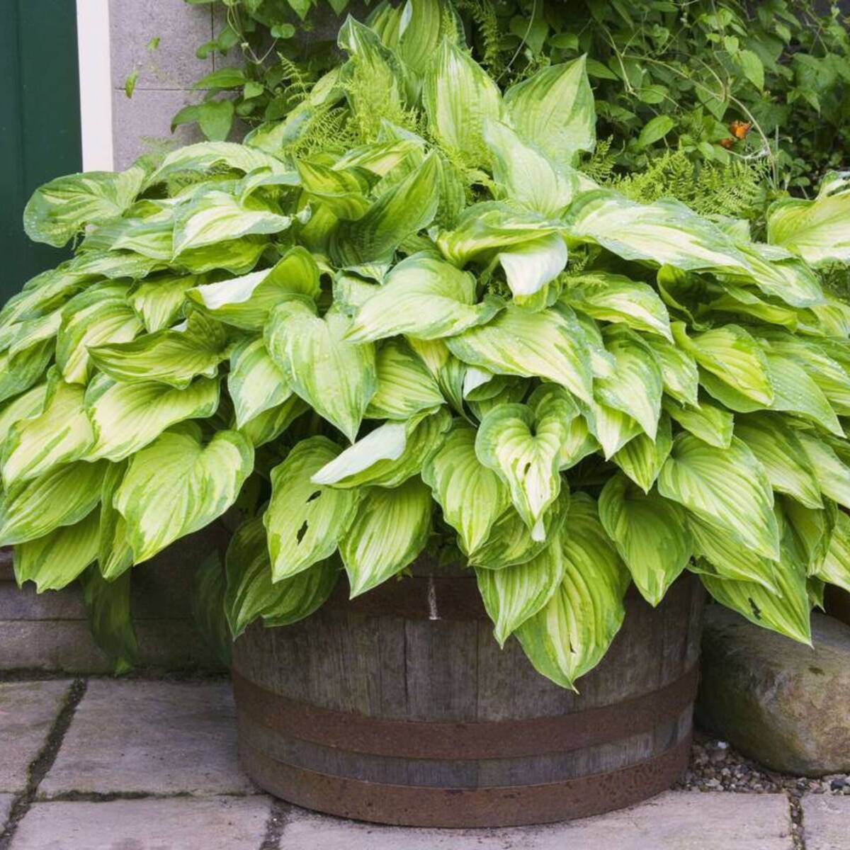 Die Gelbe Grünrand-Funkie ‚Albopicta‘ (Hosta x fortunei ‚Albopicta‘) kann mit Recht als eine Blattschmuckpflanze bezeichnet werden. Die lanzettlichen, ganzrandigen Blätter entwickeln eine schöne hellgrüne Farbe mit auffälligem, dunkelgrünem Rand. Von Juli bis August kommen die lilafarbenen Blüten dazu. Die Gelbe Grünrand-Funkie ‚Albopicta‘ wächst horstbildend und aufrecht und wird dadurch bis zu 50 cm hoch und 50 cm breit. In Staudenbeeten fügt sie sich gut ein.