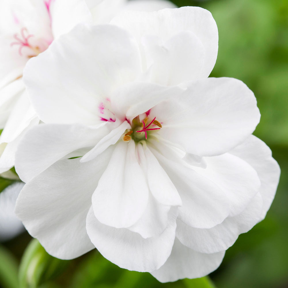 Die Hängende Geranie (Pelargonium peltatum) ist eine beliebte, sommergrüne Pflanze, die von Mai bis Oktober ihre weißen Blüten trägt. Die rundlichen Blätter entwickeln eine schöne mittelgrüne Farbe. Die Hängende Geranie wächst hängend und wird dadurch bis zu 60 cm hoch und 30 cm breit. Sie ist eine beliebte Pflanze für Blumenkübel und Balkonkästen und auch in Pflanzampeln kommt sie hervorragend zu Geltung.