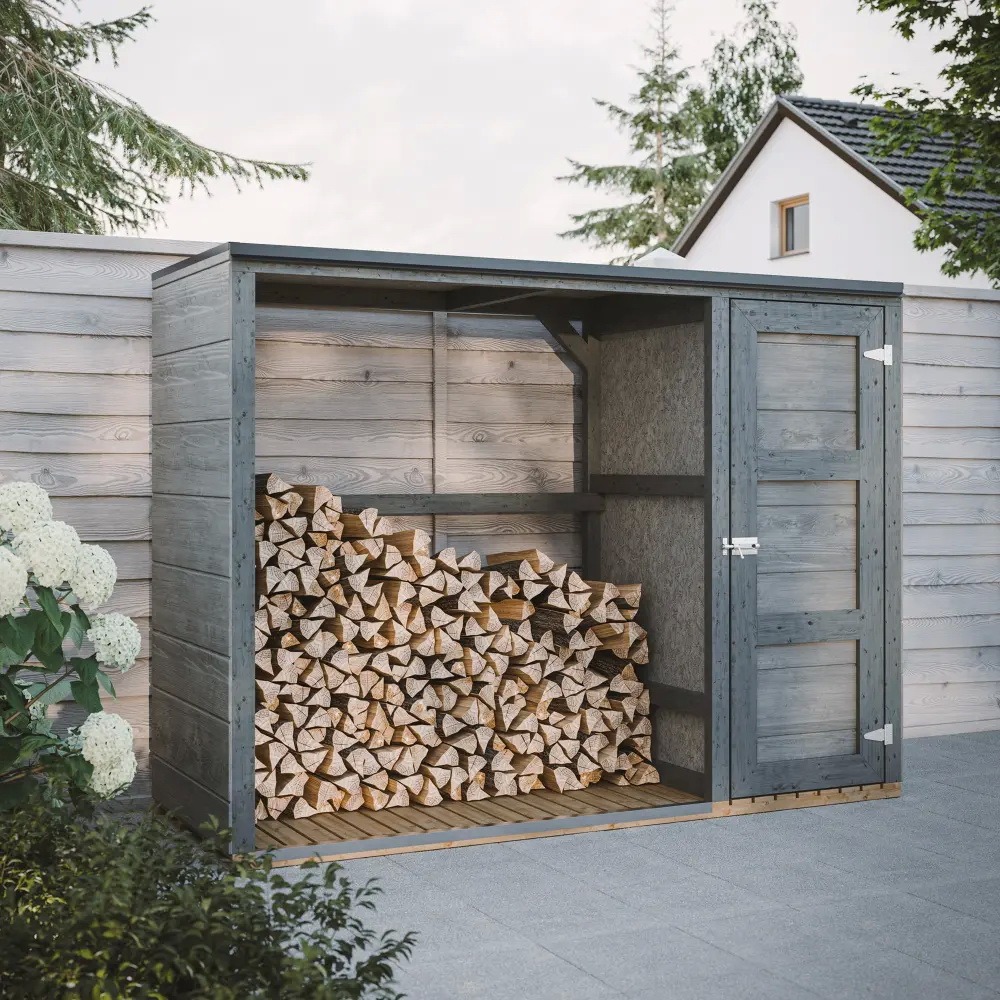 Holzlager für Brennholz 75x217x159cm kaufen bei Intergard? Das Holzlager mit den Maßen 75x217x159cm von Intergard ist eine robuste und praktische Lösung zur Aufbewahrung von Brennholz. Dieses Brennholzlager hält Ihr Holz trocken und gut belüftet – ideal für Kamin, Feuerkorb oder Holzofen. Sie können es auch zur Aufbewahrung von Werkzeugen nutzen. Hergestellt aus unbehandeltem Kiefernholz aus verantwortungsvoller Forstwirtschaft mit FSC-Zertifizierung, bietet diese Holzaufbewahrung Langlebigkeit und Beständigkeit. Die Paneele sind widerstandsfähig gegen Witterungseinflüsse, Verformung, Schimmel, Insektenbefall und Holzfäule. Die lange Lebensdauer wird durch vier wesentliche Komponenten gewährleistet – Harze, Wachs, Zink und eine grundierte Schutzbeschichtung. Die Wände des Brennholzlagers bestehen aus einem 60×60mm Holzrahmen und 10mm dicken, grundierten Paneelen. Dies sorgt für dauerhafte Stabilität, selbst unter extremen Wetterbedingungen. Hochwertiges, ofengetrocknetes Brennholz als Option erhältlich Vorteile eines Holzlagers Langlebig und pflegeleicht dank imprägniertem Kiefernholz Schützt Ihr Brennholz vor Feuchtigkeit und Witterungseinflüssen Robuste Konstruktion – stabil und sicher Geeignet für große Holzmengen bis zu 2m³ FSC-zertifiziert – umweltfreundlich und nachhaltig Einfache Montage – sofort einsatzbereit Praktische und nachhaltige Holzaufbewahrung Mit dem Brennholzlager 75x217x159cm schaffen Sie einen organisierten und trockenen Lagerplatz für Ihr Brennholz. Kombinieren Sie das Lager mit hochwertigem, ofengetrocknetem Holz für den sofortigen Einsatz in Kamin oder Feuerkorb.