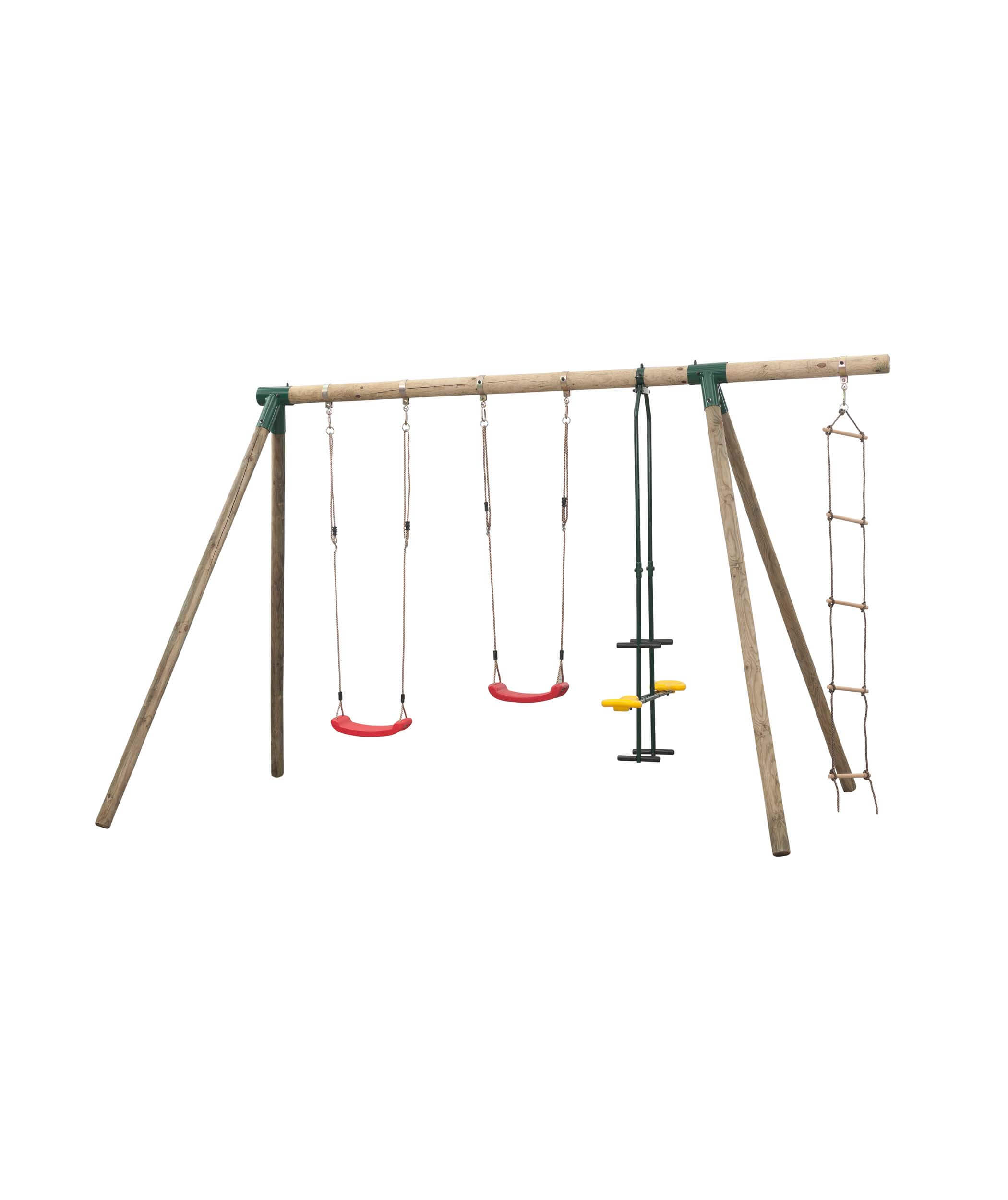 Holzschaukel Dani kaufen bei Intergard?Holzschaukel Spielgeräte Holz TÜV/CE geprüft komplett mit Holz und 2 Schaukel, Duoschaukel und Strickleiter. TÜV geprüft für Privat gebrauch.