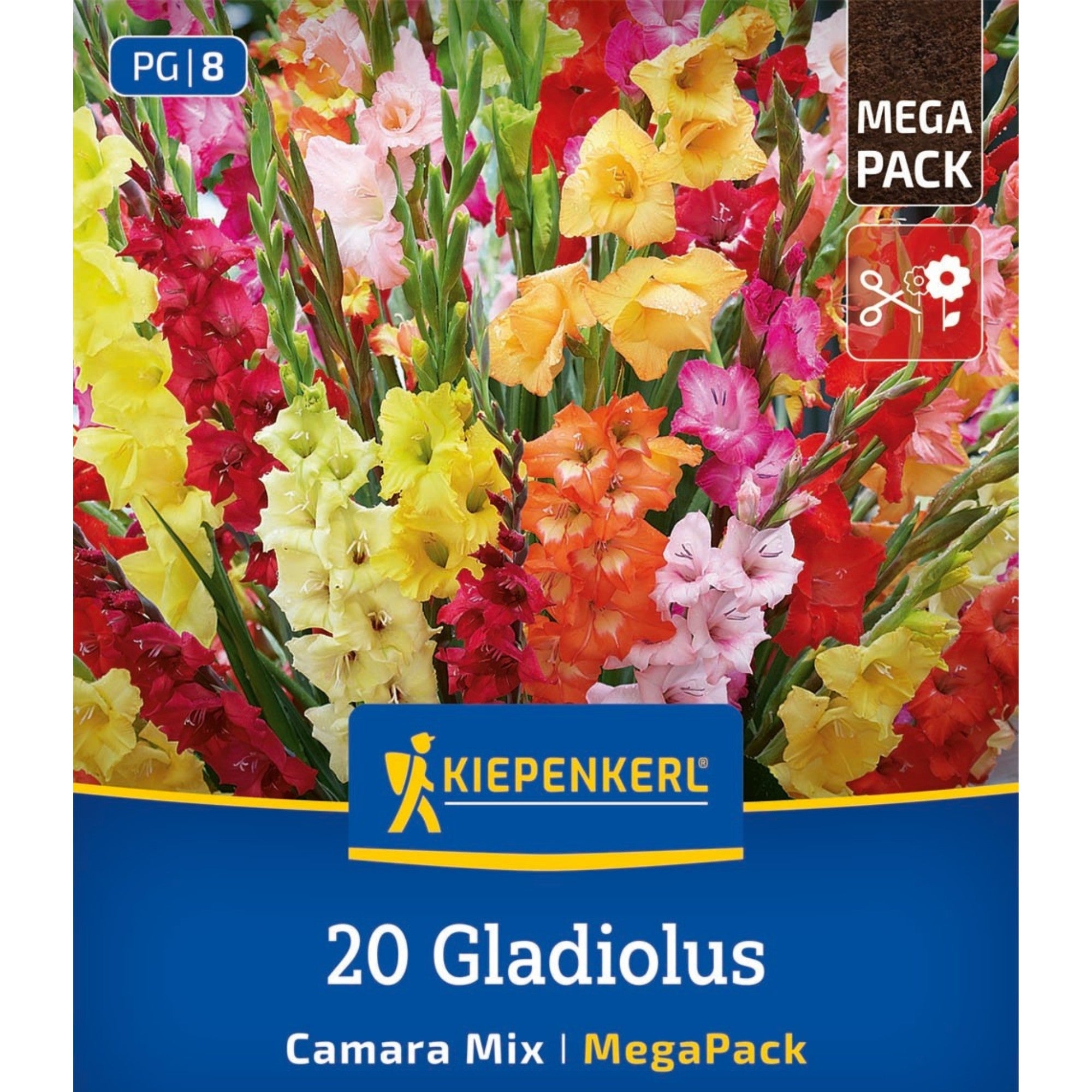Die Kiepenkerl Mega‑Pack Gladiolen ‘Camara Mix’ ist eine farbenfrohe Blumenzwiebel‑Mischung mit 20 hochwertigen Gladiolenzwiebeln für eine eindrucksvolle Sommerblüte. Nach dem Pflanzen entstehen aufrechten Triebe mit eleganten Blütenrispen, die im Sommer das Beet, Rabatte oder Pflanzgefäße wirkungsvoll strukturieren und dem Garten Höhe geben. Die Mischung bietet durch die Auswahl verschiedener Sorten eine abwechslungsreiche Wirkung im Außenbereich und sorgt für sichtbare Farbe und Lebendigkeit in Ihrem Garten, auf der Terrasse oder dem Balkon. Pflege: Pflanzen Sie die Gladiolenzwiebeln im Frühjahr (April – Mai), sobald keine Frostgefahr mehr besteht, in einen sonnigen Standort mit durchlässigem, humosem Boden. Die empfohlene Pflanztiefe beträgt etwa 10 cm, und ein Pflanzabstand von rund 15–20 cm gibt den Pflanzen ausreichend Raum für gesundes Wachstum und Blütenentwicklung. Gießen Sie regelmäßig, besonders in trockenen Perioden, damit der Boden gleichmäßig feucht bleibt, aber vermeiden Sie Staunässe. Nach der Blüte können die Zwiebeln im Herbst ausgegraben und frostfrei überwintert werden, wenn sie im nächsten Jahr wieder blühen sollen.