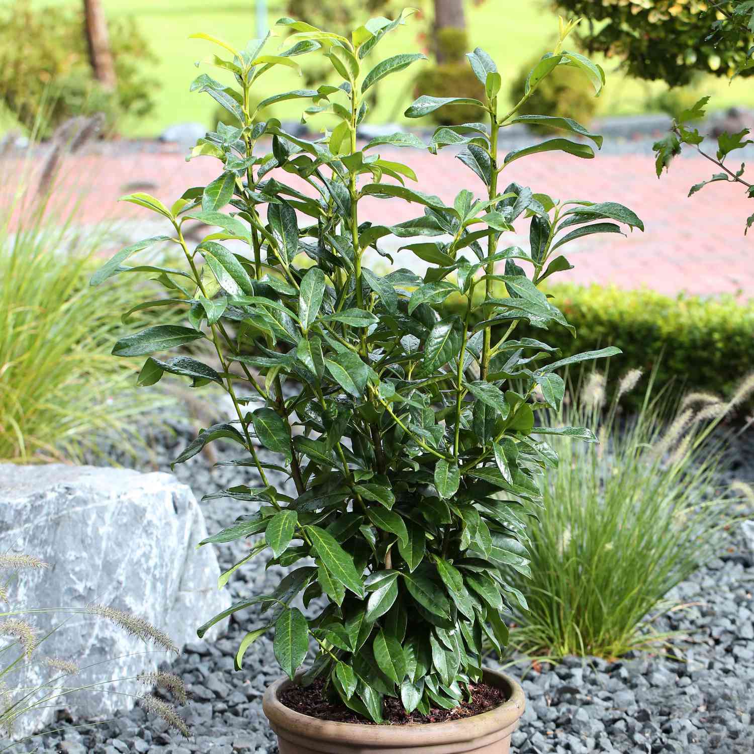 'Genolia' – einfach nur genial!Die Lorbeerkirsche, auch Kirschlorbeer, gehört nicht umsonst zu den beliebtesten Sichtschutzpflanzen in heimischen Gärten. Extrem schnittverträglich, immergrün, robust, anspruchslos und vital – das zeichnet diese Pflanze aus. 'Genolia' trägt alle diese Attribute in sich, ergänzt sie jedoch noch um einige mehr. Da wäre der auffällig dichte, schlanke und fast schon säulenartige Wuchs. Das macht 'Genolia' zur perfekten Heckenpflanze, bei der aufwendige seitliche Schnittmaßnahmen gänzlich entfallen. Zudem hat diese Schweizer Züchtung kaum Fruchtansatz. Ihre stark duftenden Blüten behält uns 'Genolia' trotzdem nicht vor! Im Mai und Juni stehen sie in weißen Rispen und locken Schmetterlinge, Bienen und Hummeln an.Prunus laurocerasus 'Genolia' gedeiht bestens in sonnigen bis halbschattigen Lagen auf normalem Gartenboden. Das schmale, längliche und ledrige Blatt erinnert an jenes des Gewürzlorbeers. Daher auch der Name. Lorbeerkirsche 'Genolia' kann Höhen bis 3 m erreichen und wird dabei nur maximal 1 m breit. Pflanzen Sie daher bei der Neuanlage einer Hecke besser drei, statt nur zwei Exemplare pro Meter. Die gute Schnittverträglichkeit von 'Genolia' erlaubt auch Radikalmaßnahmen. Ansonsten ist ein Rückschnitt im Frühjahr oder Herbst empfehlenswert. Sie ist sehr gut frostverträglich und bleibt auch bei Schnee in Form.Lorbeerkirsche 'Genolia' ist die ideale Heckenpflanze schlechthin! Sie bietet aufgrund ihrer dichten Verzweigung perfekten Sichtschutz rund ums Jahr. Gleichzeitig wirkt sie stets aufgeräumt und vital.