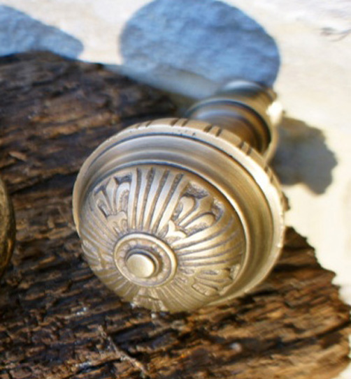 tags: antike Türbeschläge, historische Türbeschläge, Nostalgie Türbeschläge, Türknauf, Türknauf Haustür, Messing, Knauf für Haustür, Messing, Gold, patiniert
