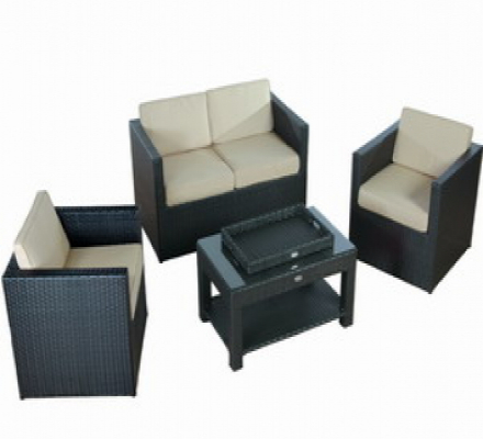 Loungeset Gartenmöbel Wicker Segovia besteht aus Bank, 2 Sessel und 1 Tisch, Polyrattan Wicker Kunststoffgeflecht