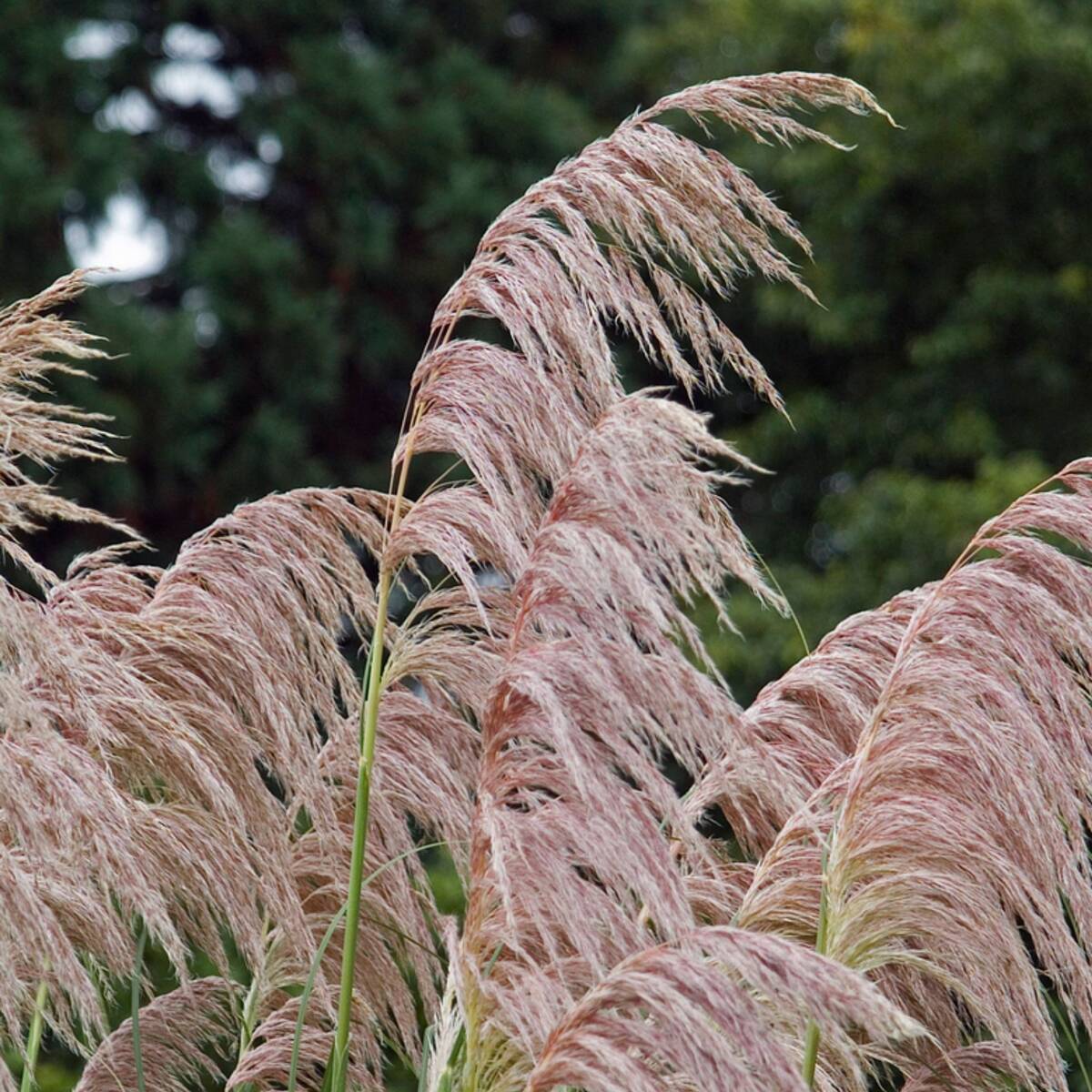 Das Amerikanische Pampasgras ‚Pink Feather‘ (Cortaderia selloana ‚Pink Feather‘) zeichnet sich durch seine wintergrünen, linealen Blätter aus, die eine schöne dunkelgrüne Farbe haben. Sein Wuchs gestaltet sich ausladend und lässt es bis zu 1,5 m hoch und 1,5 m breit werden. Ein Hingucker sind auch seine rosafarbenen Blüten-Rispen, die das Amerikanische Pampasgras ‚Pink Feather‘ von September bis November trägt. Im Garten wirkt es als prächtige Solitärpflanze, harmoniert aber auch in Gruppen mit anderen Pflanzen.