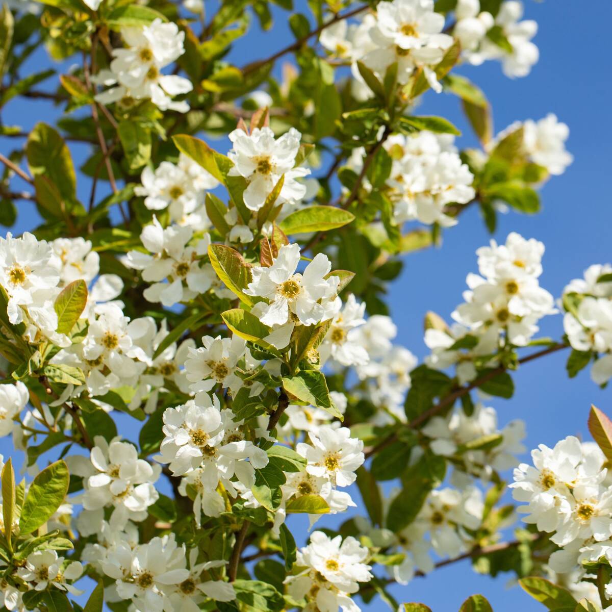 Die Prunkspiere ‚Snow White‘ (Exochorda serratifolia ‚Snow White‘) ist ein sommergrünes Laubgehölz, das einen schlanken Wuchs aufweist. Bis zu 3 m Höhe und 2,5 m Breite kann sie damit erreichen. Im Mai trägt sie weiße Blüten. Damit ist sie nicht nur ein Blickfang, sondern auch eine interessante Nahrungsquelle für viele Insekten. Als attraktiver Zierstrauch verliert sie auch als Kübelpflanze nichts von ihrer Schönheit.