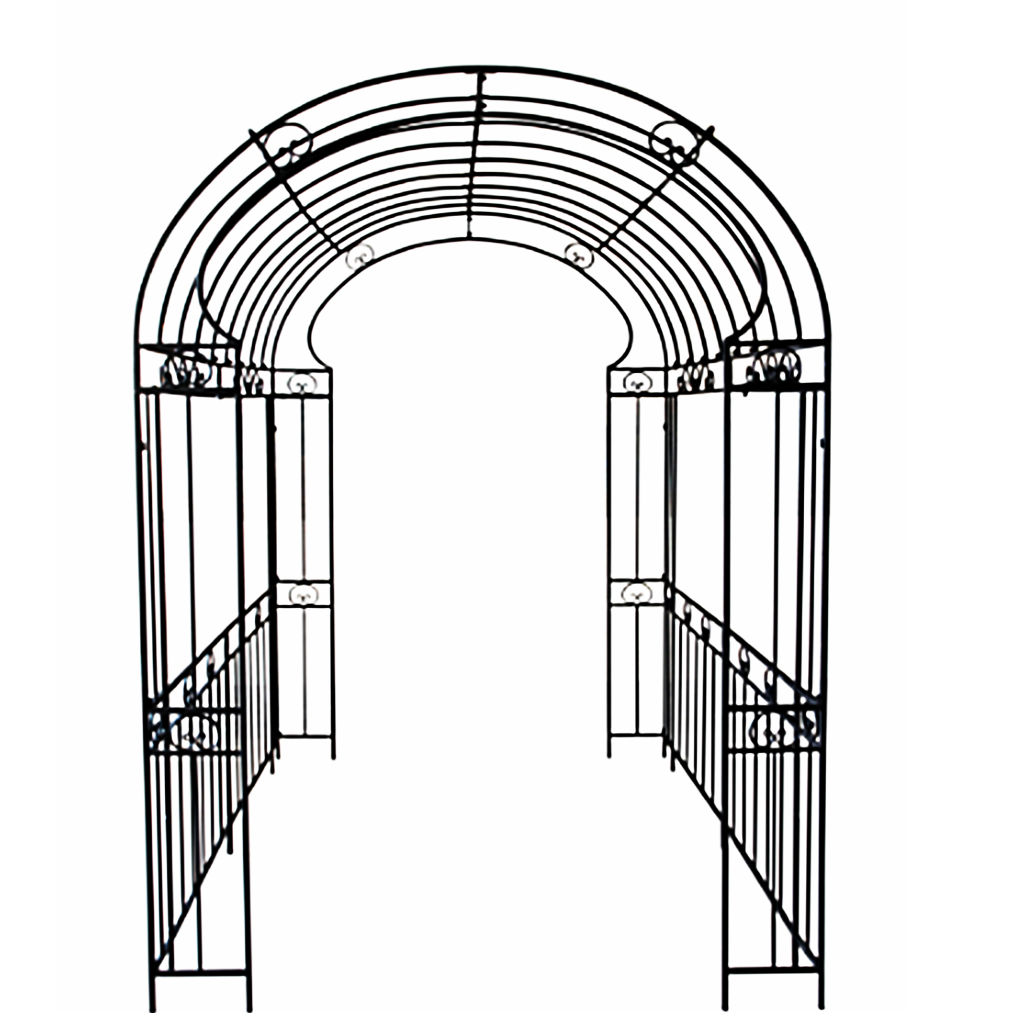 Tim Garden Rosenbogen Tunnel XXL — B 183 x T 280 x H 254 cm — Massives Schmiedeisen im romantischen DesignVerleihen Sie Ihrem Garten das gewisse Etwas — mit dem Tim Garden Rosenbogen Tunnel XXL aus massivem Schmiedeisen. Dieses handgefertigte Kunstwerk ist ebenso stabil wie dekorativ und bringt pure Romantik in Ihre grüne Oase. Die ausgefeilter Bauweise, das robuste Material und das zeitlose Design machen ihn zum Highlight für Kletterrosen, Efeu oder Clematis — für einen märchenhaften Rückzugsort im Freien.✅ Ihre Vorteile auf einen Blick:Massives Schmiedeisen: Sicher, robust und besonders langlebig — für viele Jahre im GartenHandgefertigte Qualität: Liebevoll geschmiedet für Einzigartigkeit und besondere ÄsthetikRomantisches Design: Verschnörkelte Streben für das Wachstum von Rosen, Kletterpflanzen & Co.Hohe Stabilität: 10 Streben für festen Halt und ausgeprägte StandfestigkeitGroßzügige Maße: 183 cm breit, 280 cm lang und 254 cm hoch — als Laubengang oder Torbogen geeignetVielseitig Einsetzbar: Perfekt für Gärten, Eingänge, Terrassen & als Hintergrund für FotosDekoratives Highlight: Verleiht jedem Outdoor-Bereich das gewisse EtwasRobustes Gewicht: 30 kg für zusätzlichen Stand & Sicherheit im Freien