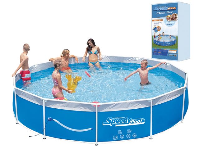 Schwimmbad Kunststoffgarten Speedy Pool, mit einer Größe von 360 x 80 cm. Dieser Pool-Kunststoffgarten hat einen rostfreien Stahlrahmen, der dem Pool-Kunststoffgarten zusätzliche Festigkeit verleiht. Ausgestattet mit einer neuen eingebauten Pumpe, 12 Volt. Da die Pumpe in den Plastikgarten des Schwimmbeckens eingebaut ist, ist sie viel sicherer: Nie wieder über lose Schläuche stolpern! Die Pumpe hat eine Förderleistung von 2000 Litern pro Stunde. Der Filter ist sehr einfach zu ersetzen. Der Plastic Garden Pool besteht aus dreilagigem PVC-Raster und ist mit einem Schraubventil ausgestattet, das eine einfache Entleerung des Pools ermöglicht. Ab 6 Jahren.