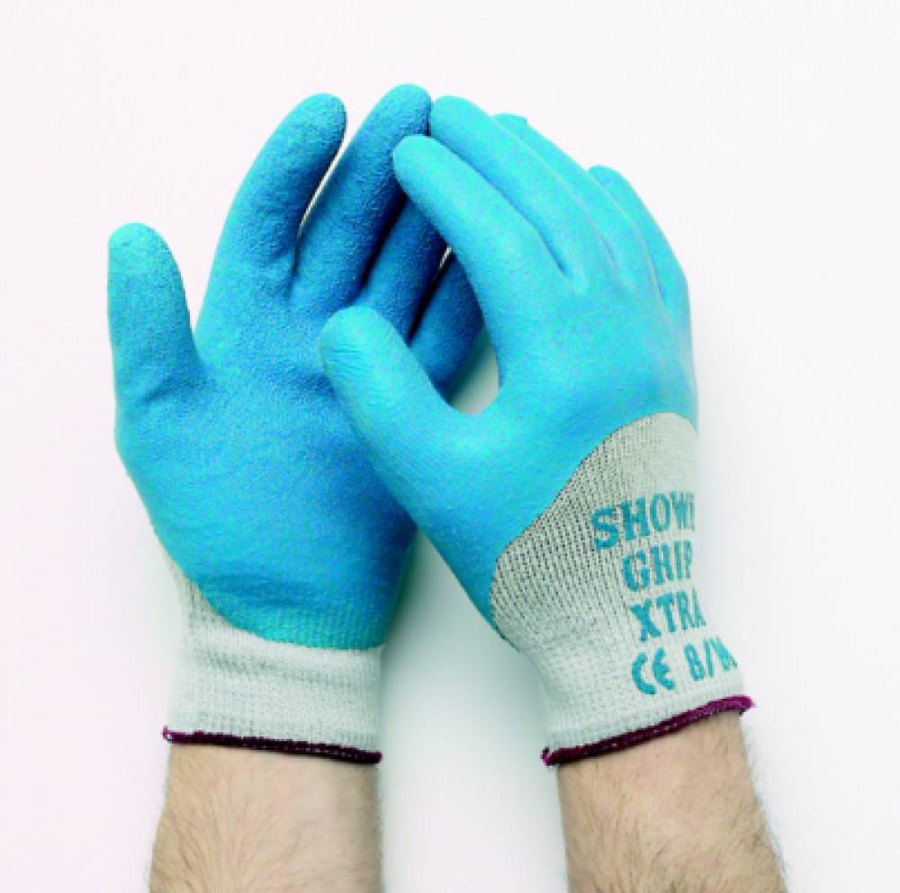Showa Grip XTRA Dieser Handschuh weist die gleichen Qualitätsmerkmale auf wie der Grip 310 und bietet zusätzlich optimalen Schutz vor Feuchtigkeit. Genau richtig für Bereiche wie Kompost oder feuchte Böden. Latex-Beschichtung des Handrückens bis zu den Knöcheln – Waschbar