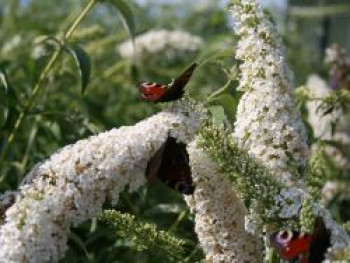 strahlend weiße Blüten, intensiver Duft, zieht Schmetterlinge und Bienen an, winterhart