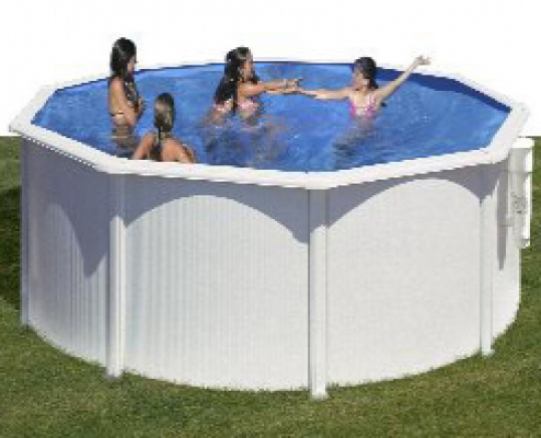 Schwimmbad mit Stahlwand. Modell rund. Diese Pools sind in ovalen und runden Modellen erhältlich.Inklusive Liner 40/100, Ständer 12 cm, Träger 15 cm, Patronenfilter, Abschlusskappen oben und kindergesicherter Treppe. Bei dieser Treppe können Sie die Stufen entfernen, damit Ihr Kind den Pool nicht ungesehen betreten kann.Bitte beachten Sie, dass Sie beim ovalen Modell zusätzlichen Platz zum Aufstellen benötigen, dieses Modell hat Salzwiesen.