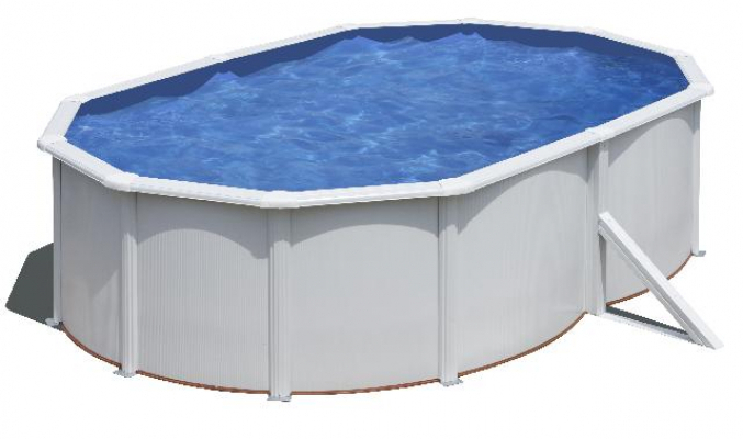 Schwimmbad mit Stahlwand. Modell oval. Diese Pools sind in ovalen und runden Modellen erhältlich.Inklusive Liner 40/100, Ständer 12 cm, Träger 15 cm, Patronenfilter, Abschlusskappen oben und kindergesicherter Treppe. Bei dieser Treppe können Sie die Stufen entfernen, damit Ihr Kind den Pool nicht ungesehen betreten kann.Bitte beachten Sie, dass Sie beim ovalen Modell zusätzlichen Platz zum Aufstellen benötigen, dieses Modell hat Salzwiesen.