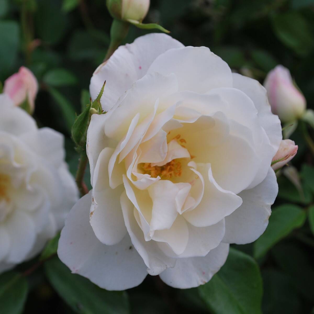 Die Strauchrose ‚Schneewittchen’® (Rosa ‚Schneewittchen’®) ist ein buschig und aufrecht wachsender Strauch, der etwa 1,2 m hoch und 70 cm breit werden kann. Von Juni bis Oktober trägt sie attraktive, schalenförmige, gefüllte Blüten, deren Besonderheit nicht nur die weiße Farbe ist, sondern auch ihr leichter Duft. Ihre gefiederten, dunkelgrünen Blätter unterstreichen den Charakter dieser Rose zusätzlich. Als Solitär ist diese Rose ein Blickfang, genauso wie sie sich in Gruppenpflanzungen einfügt.