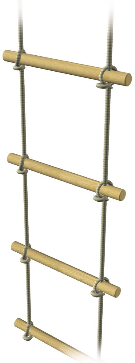 Strickleiter Spielgerät 5 Sprosse 35x580mm, 16mm sisalseil, Firsthohe 2,25m