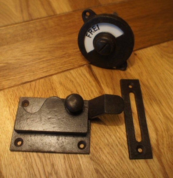 tags: Toilettenverschluss-Garnitur WC, WC-Türbeschlag, Beschlag, Messing, Toilettenverschluss, historische Toilettentüren, Türbeschlag, Schließer Toilettentür, Drehverschluss, Eisen, braun